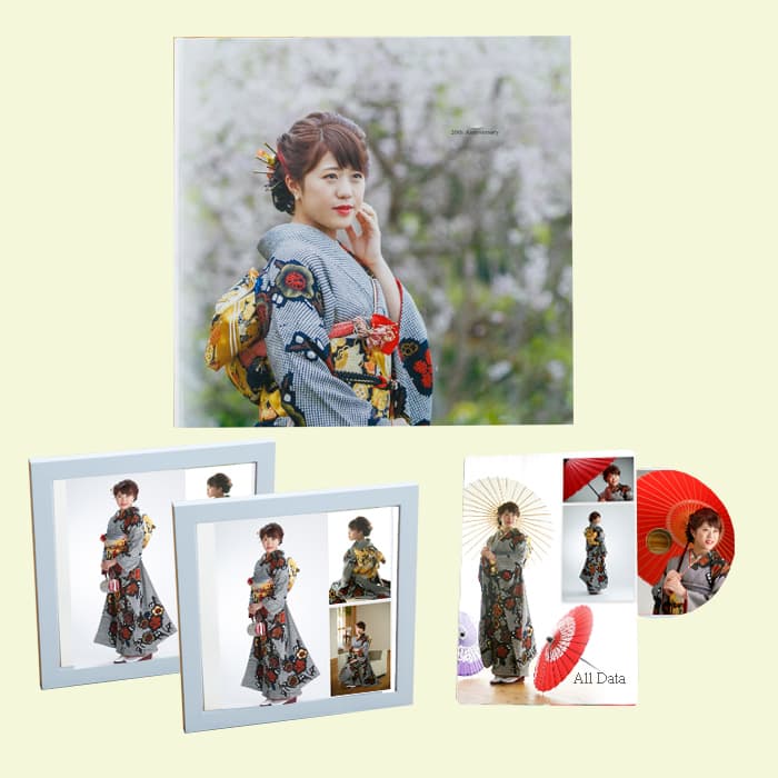 1冊だけのアルバムではなく、おじいちゃんおばあちゃんへのプレゼントとして、額にしたり、もう1冊追加したり、とお考えの方に、お得なセットプランをご用意しました。