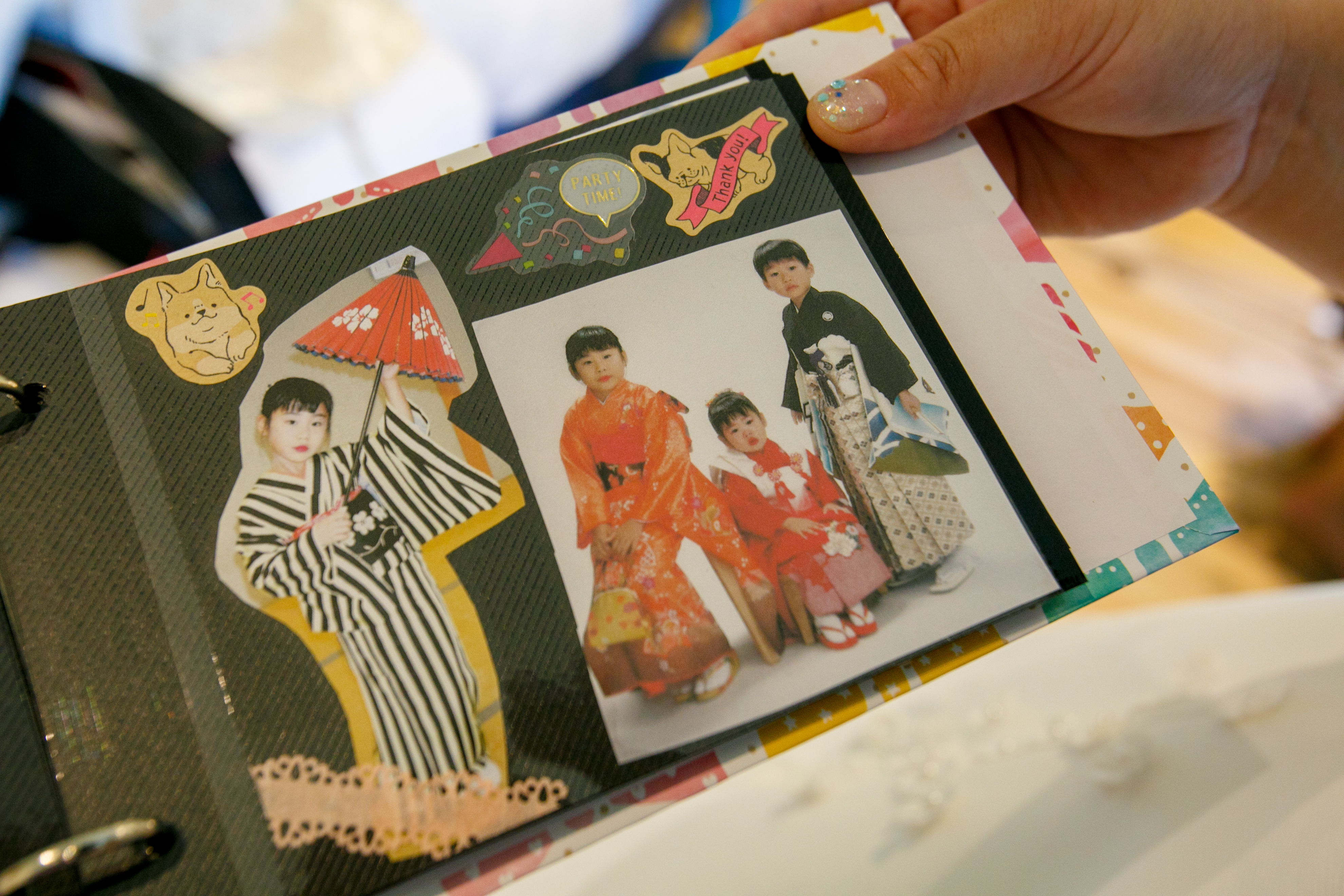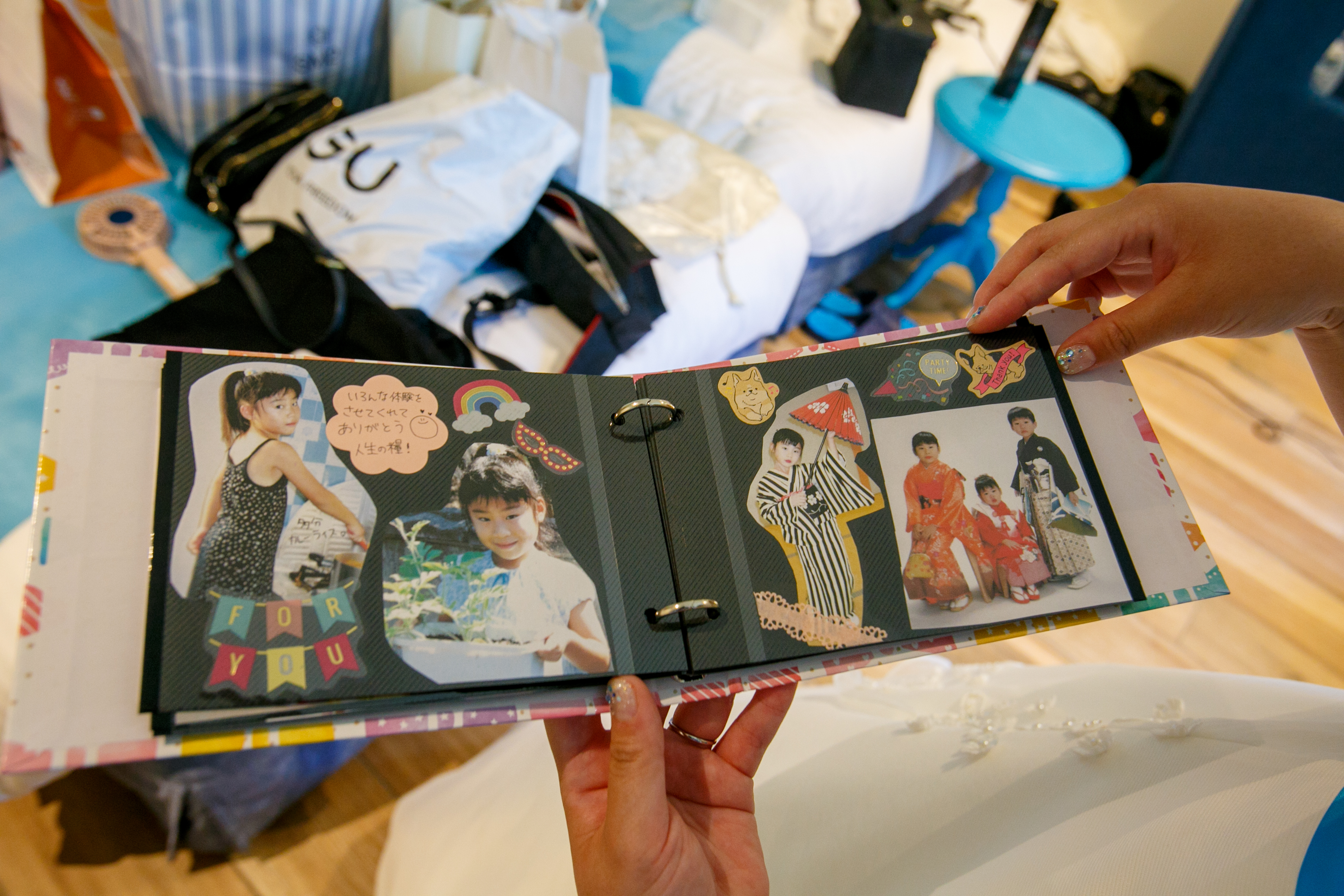 そのアルバムの中には、当店が撮影した新婦様姉弟の七五三の写真がありました。