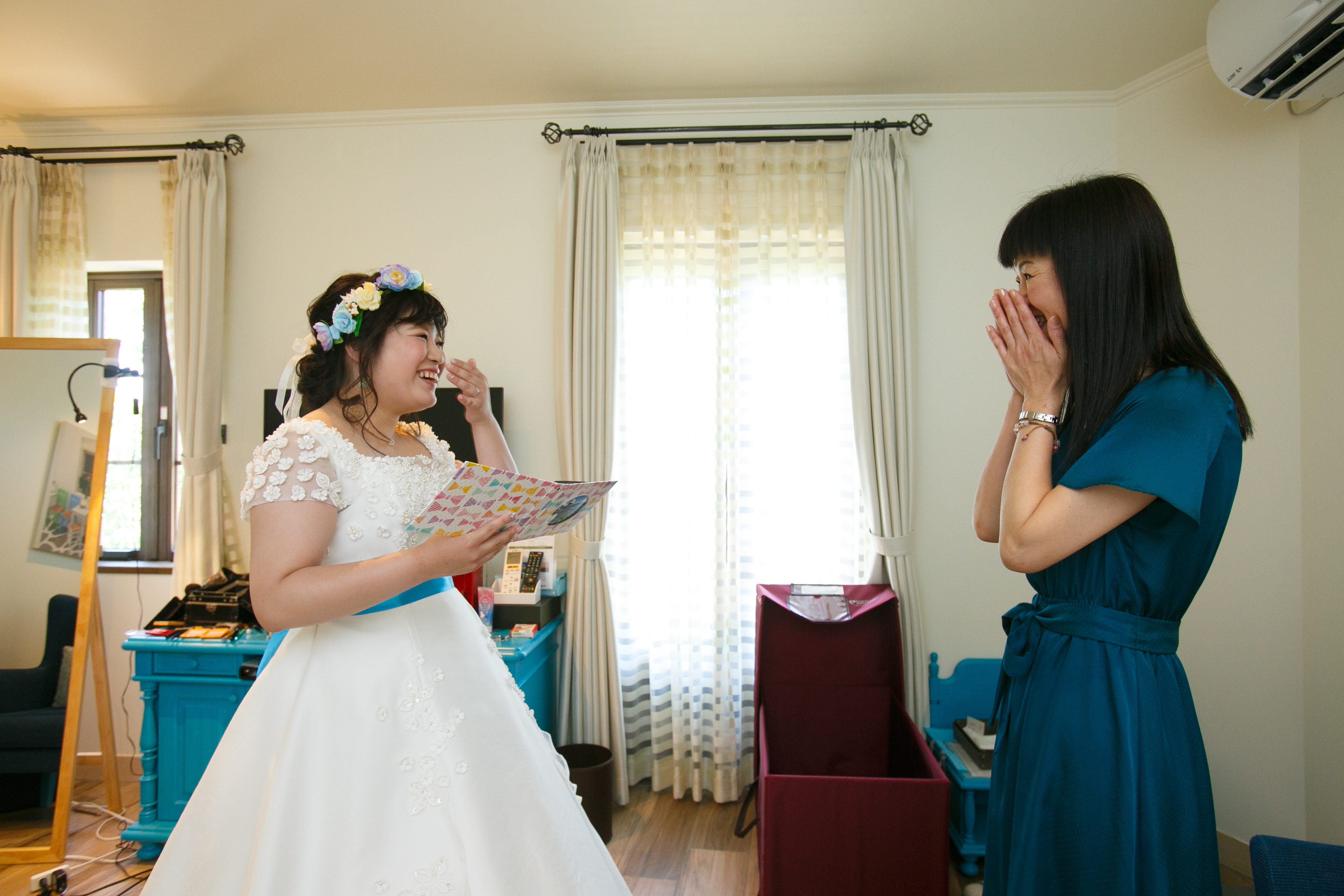 素敵な地中海村でのロケーション撮影のあと、通常はそこで終わりなのですが、撮影後お支度部屋で、新婦様は、お母様へ感謝の手紙を用意していました。