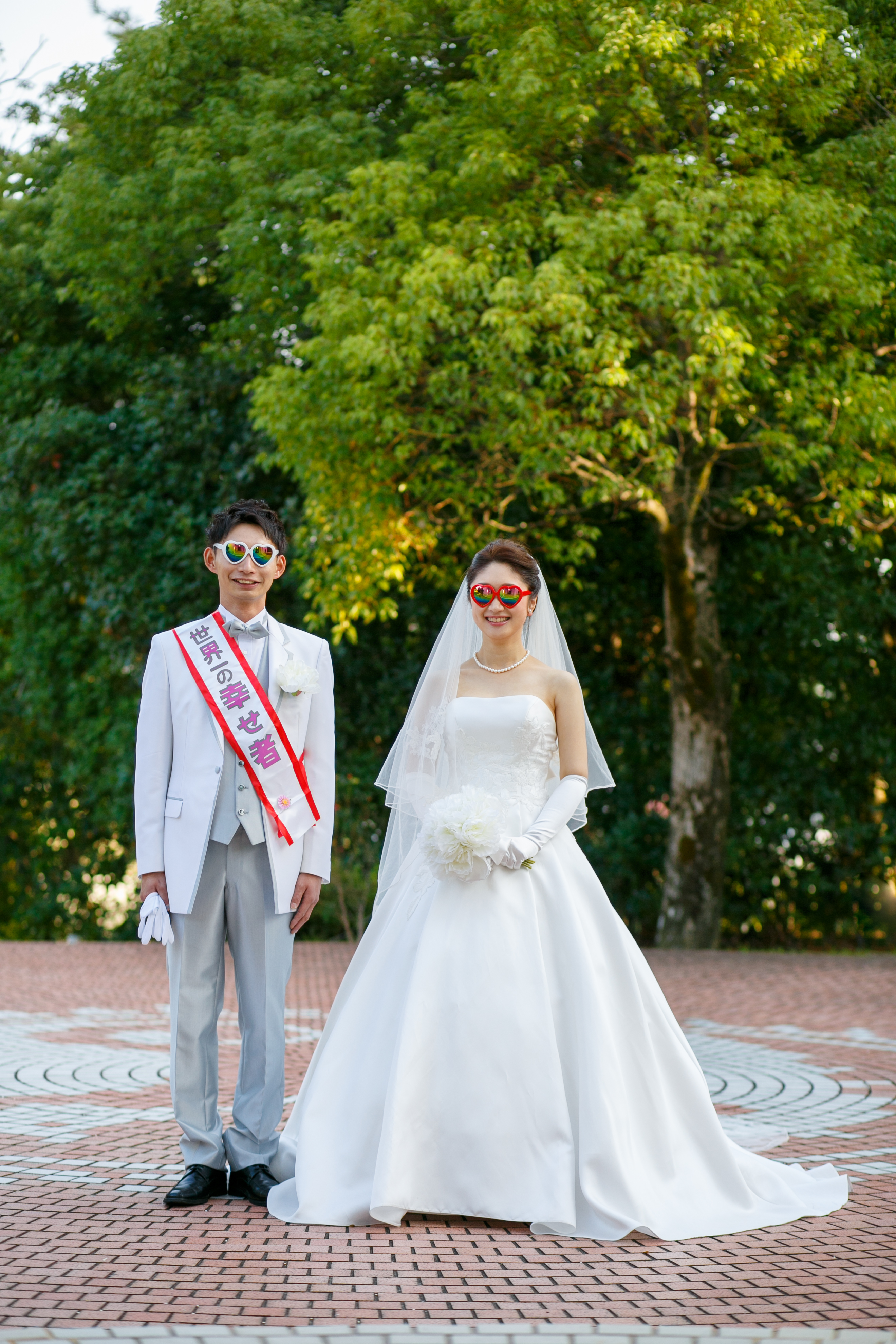 前撮りで使用した『世界一の幸せ者』のタスキ。